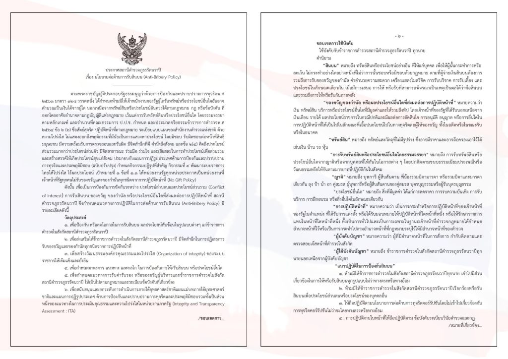 ประกาศนโยบายต่อต้านการรับสินบน (Anti-Bribery Policy)
