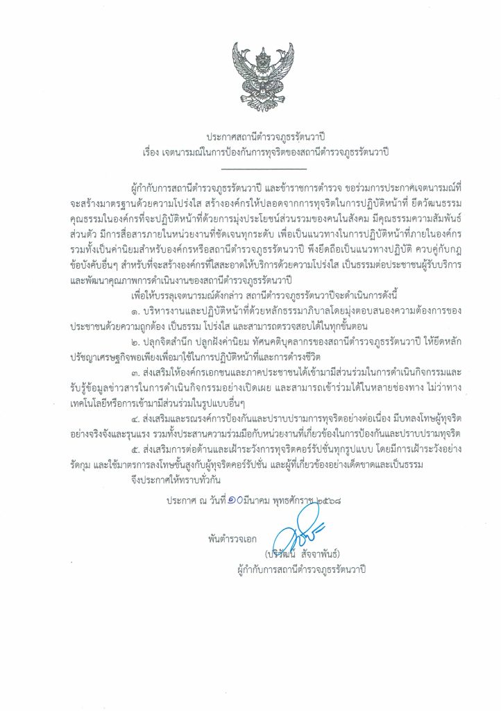 ประกาศนโยบายต่อต้านการรับสินบน สภ.รัตนวาปี