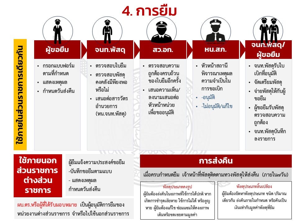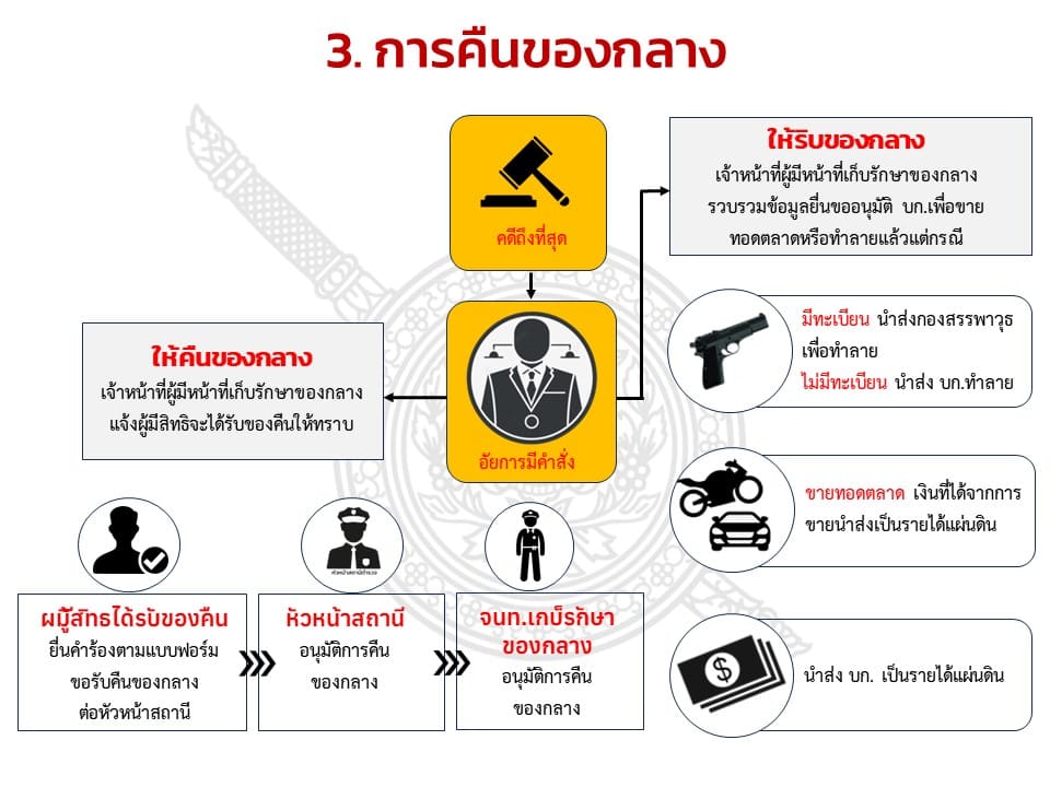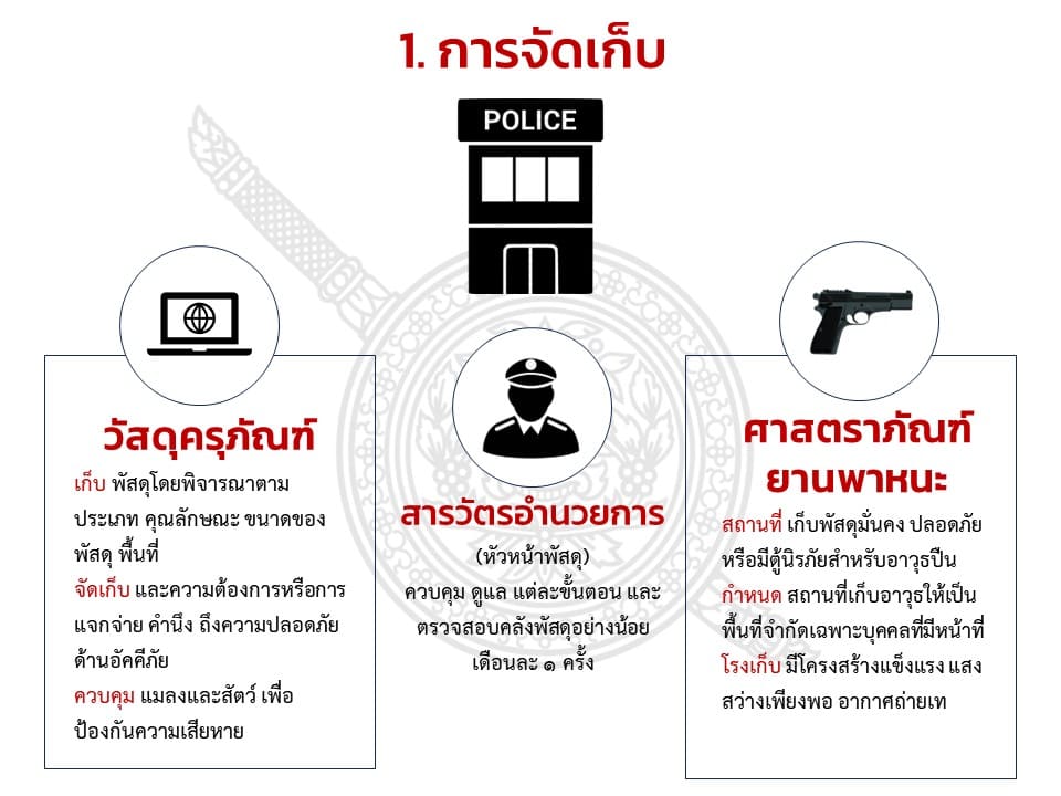 การจัดการทรัพย์สินของทางราชการ ของบริจาค การจัดเก็บของกลาง และการรายงานผล