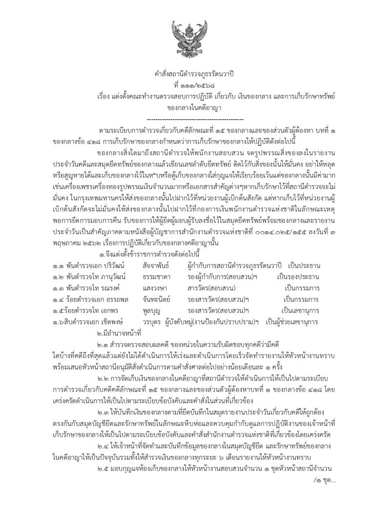 ของบริจาค และการจัดเก็บของกลาง พ.ศ.2568