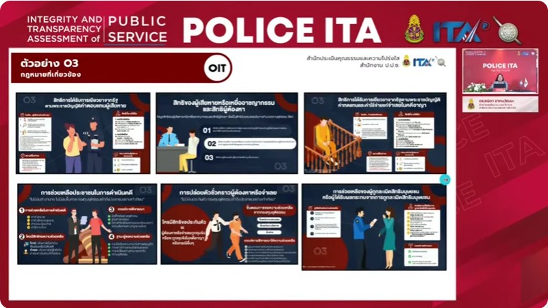 – ให้สถานีตำรวจประชาสัมพันธ์เกี่ยวกับการประเมินคุณธรรมและความโปร่งใสในการ ดำเนินงานของหน่วยงานภาครัฐ (Integrity & Transparency Assessment : ITA) ของสถานีตำรวจ ให้แก่ ประชาชน ผู้มาใช้บริการประจำจุดประชาสัมพันธ์ ให้คำแนะนำและขอความร่วมมือในการทำแบบวัดการรับรู้ของผู้ มีส่วนได้ ส่วน เสียภายนอก (EIT)